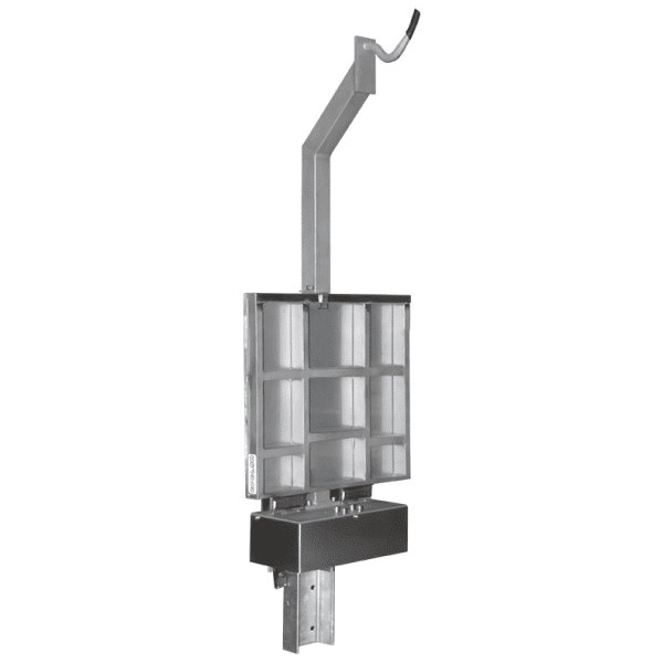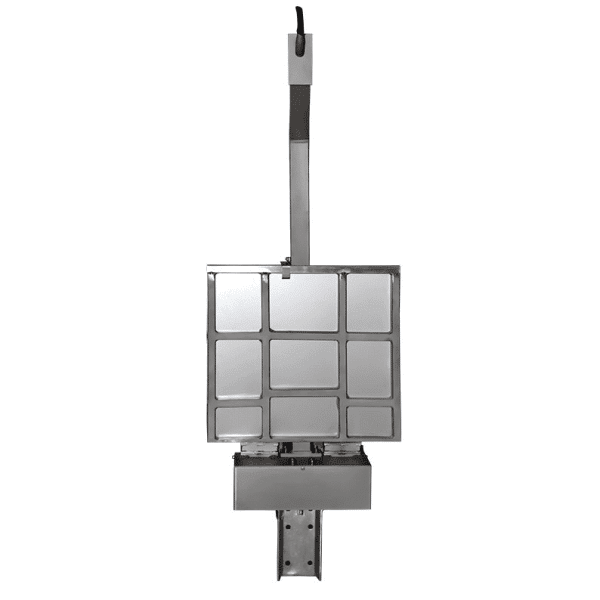 Constituído por uma coluna com uma célula de carga suportando um gancho e um conjunto base-bandeja dobrável.