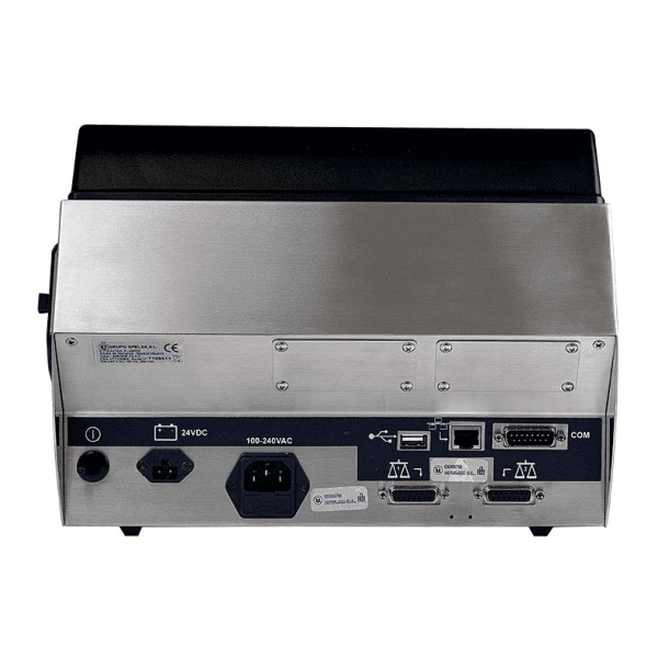 Possui 1 canal Ethernet (conector RJ45) e 1 USB para conexões com computador, impressora, rotuladora ou repetidora.